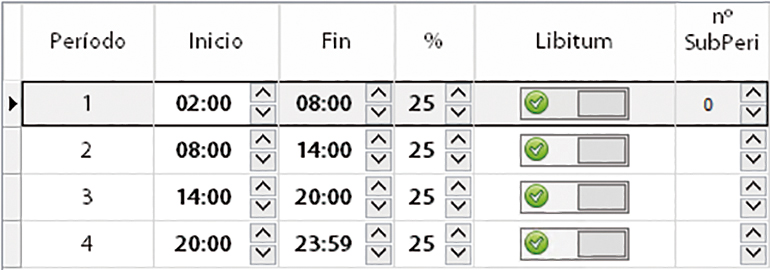 Realmente se puede hacer lo que se desee. En la tabla 1 tenemos un ejemplo con 4 periodos de alimentación con 6 horas entre ellos: